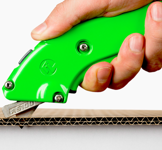 With its blunted tip safety blade, you’re no longer at risk of accidental punctures that happen with other safety knives. All you need to do is unlock the steel locking guard, squeeze the trigger, and cut away. The safety mechanism will automatically return to its safe position once it leaves the material it’s cutting — locking into place to prevent any accidental cuts.