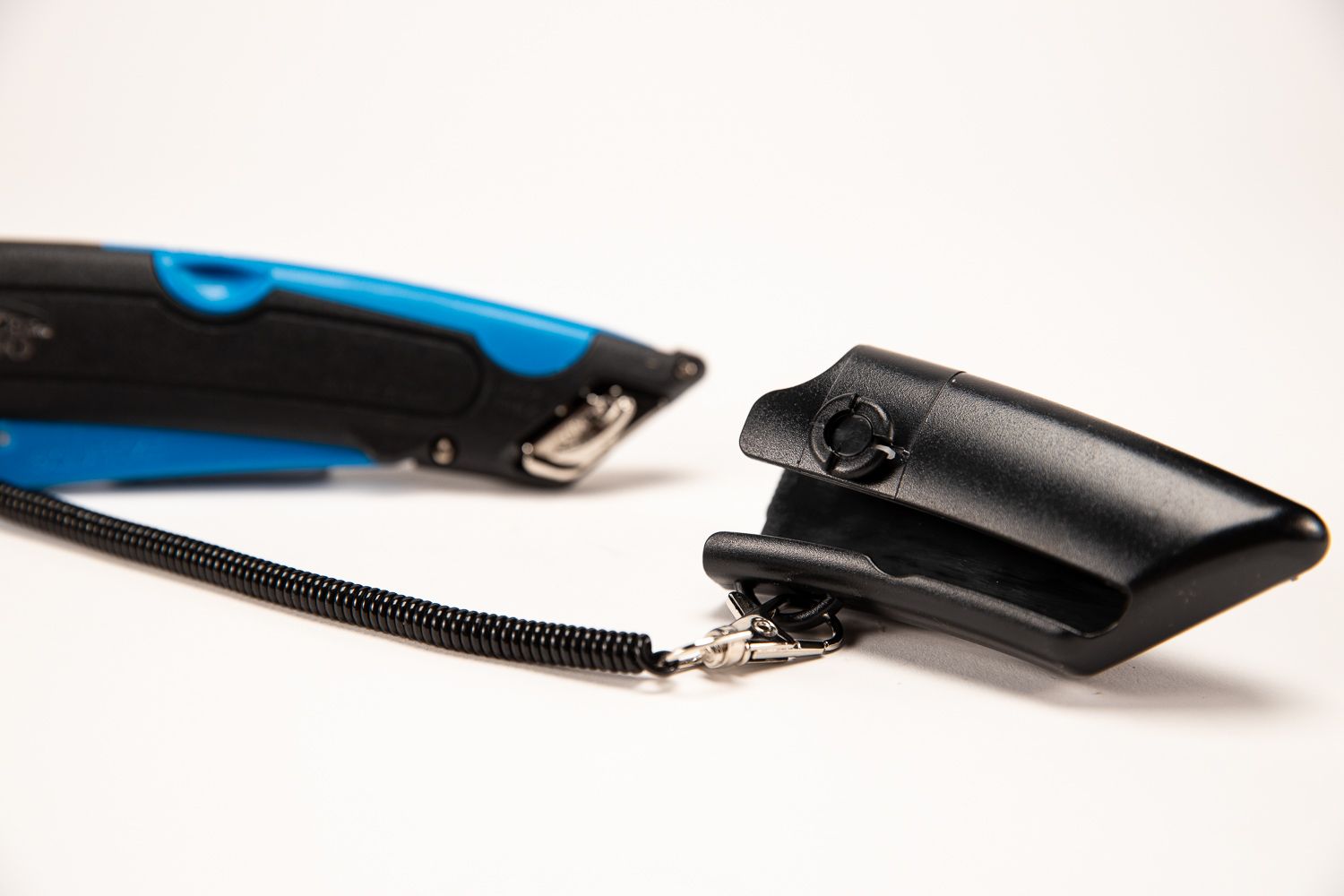 Equipped with dual-sided edge guides, the Easy-Cut 1000 box cutter enables swift and accurate top cuts, seamlessly returning to a locked position after each use. Additionally, the clip-on holster and lanyard rotate 180 degrees for easy access and secure attachment to a belt loop, preventing misplaced cutters and potential injuries.