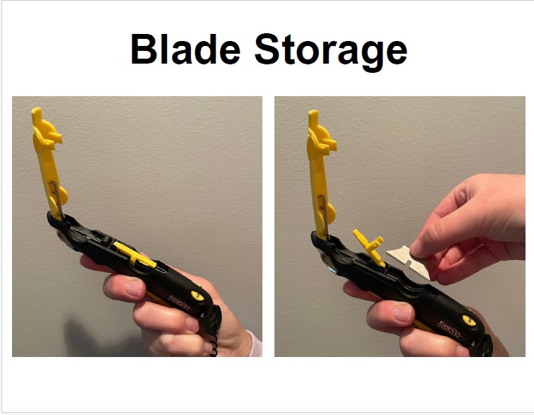 – Access spare blades stored within the knife by simply lifting the top, ensuring uninterrupted workflow.